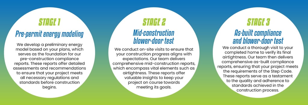 We deliver comprehensive as-built compliance reports, ensuring your project meets all Step Code requirements and is ready for occupancy.