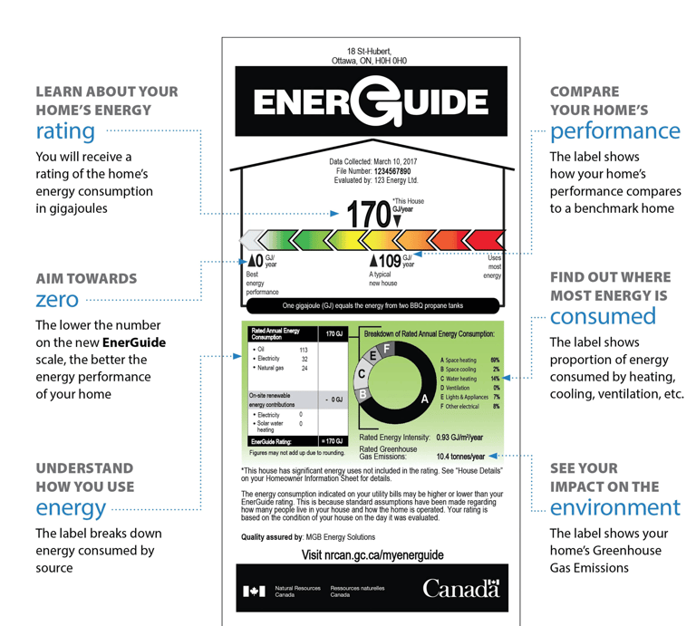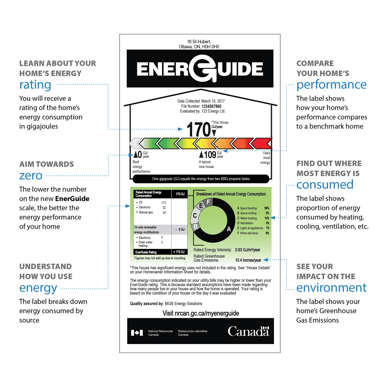 EnerGuide home evaluation can be your first step towards a more energy-efficient home and savings on your utility bills. EnerGuide Rating System is a nationally recognized rating tool used in many energy efficiency programs across Canada.